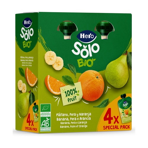 Taštička banán, hruška a pomeranč Eco uchovávaná přirozeným způsobem, tepelnou úpravou, bez potřeby konzervantů či barviv. Lahodné kombinace ekologického ovoce a zeleniny kdekoli díky praktickému obalu, který nevyžaduje chlazení.