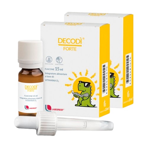 Pack Bambini Decodì Forte od Laborest je doplněk stravy na bázi vitamínu D, užitečný pro normální vstřebávání vápníku a pro udržení normálních kostí a zubů. Vitamín D se podílí na procesu buněčného dělení a přispívá k udržení normální svalové funkce a normálního fungování imunitního systému.