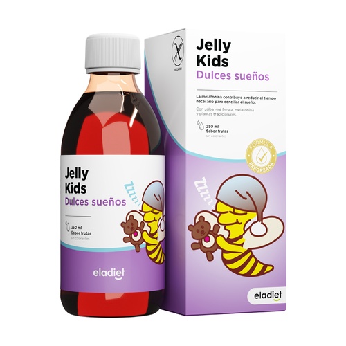 JellyKids Sladké sny od Eladiet je doplněk stravy z čerstvého mateří kašičky s melatoninem a tradičními rostlinami (heřmánek, lípa, meduňka a levandule).