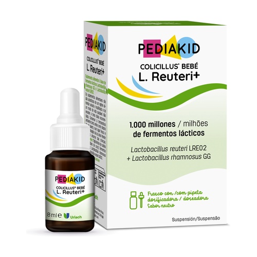 Pediakid Colicillus Dítě L.Reuteri+ je doplněk stravy na bázi mléčných kultur Lactobacillus rhamnosus GG a Lactobacillus reuteri LRE02.