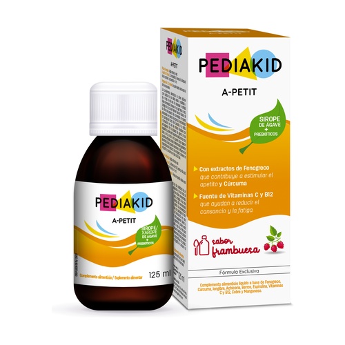 Pediakid A-Petit obsahuje extrakty z pískavice, která přispívá k stimulaci chuti k jídlu, a kurkumy. Zdroj vitamínů C a B12, které pomáhají snižovat únavu a vyčerpání.