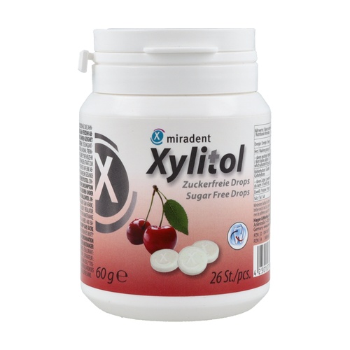 Třešňové bonbóny s xylitolem od Miradent obsahují 100 % xylitolu (xylitol) v žvýkačce nebo pastilkách, které umožňují dokonalou a zdravou péči o zuby kdykoli a snadno.