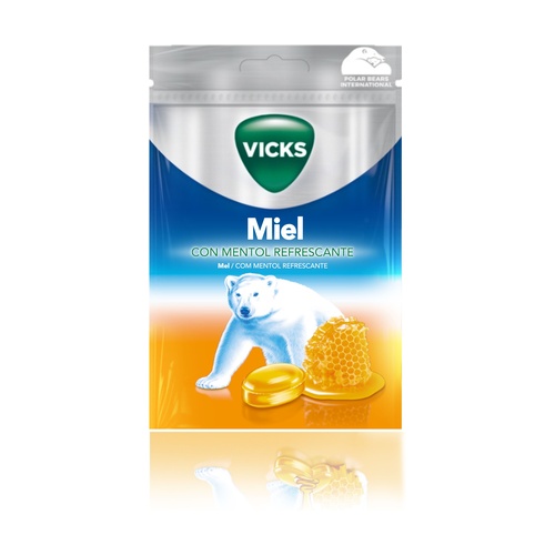 Vicks Medové bonbóny, bonbóny s medem a mentolem. Každý bonbón nabízí lahodnou medovou chuť a okamžitý osvěžující pocit díky mentolu.
