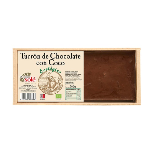 Čokoládový nugát s kokosem a s certifikovanými surovinami ekologické produkce.