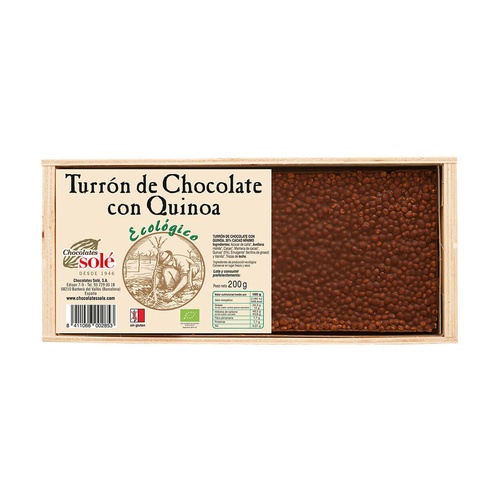 Čokoládový nugát s quinoou a s certifikovanými surovinami ekologické produkce.