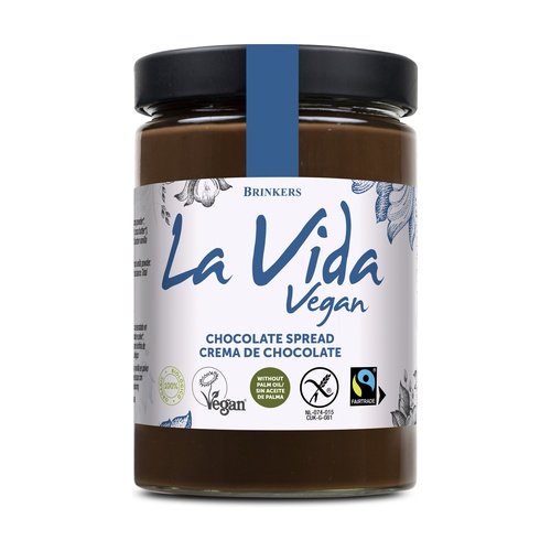 Veganský čokoládový krém La Vida Vegan je krém z lískových oříšků a čokolády na potírání. Vyrobený ze slunečnicového oleje.