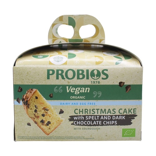 *mouka z špaldové pšenice 40 %, třtinový cukr, *kousky hořké čokolády 12 % (*kakaová hmota, *kakaové máslo, *třtinový cukr, přírodní vanilková aroma), *slunečnicový olej, *kyselý kvásek z pšenice 9 % (*mouka z pšenice 63 %, voda), *agávový sirup, *ječmenný slad, mořská sůl, přírodní aroma citrusového oleje (pomeranč, citron), přírodní vanilkové aroma. *Biologické.