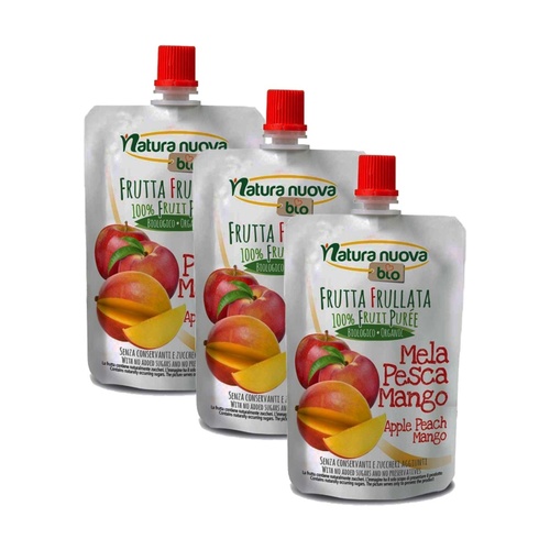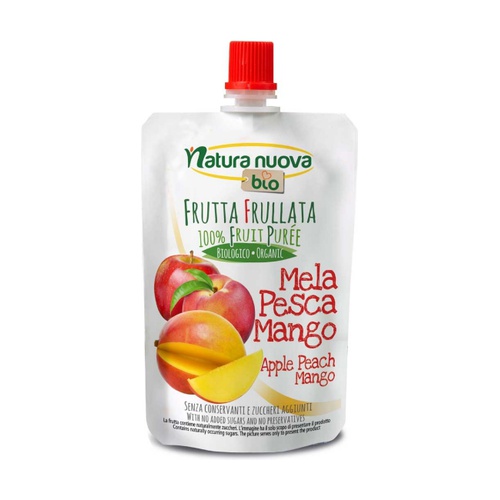 Tropické pyré z jablka, broskve a manga od Natura Nuova je pyré vyrobené z ingrediencí pocházejících z ekologického zemědělství, bez přídavků, konzervantů a barviv. Neobsahuje přidané cukry, pouze ty, které se přirozeně vyskytují v ovoci, a jeho praktické balení vám umožní vychutnat si všechny výhody ovoce rychlým a pohodlným způsobem.