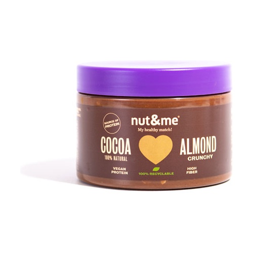 Křupavý mandlový a kakaový krém je skvělým zdrojem bílkovin, poskytujícím 20 g na každých 100 g, a hořčíku a železa díky odtučněnému čistému kakau.