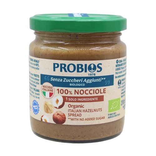 Krém 100% z lískových ořechů od Probios je krém z lískových ořechů, získaný výhradně mletím nejlepších lískových ořechů pěstovaných v oblasti Lazio, a vyrábí se bez použití emulgátorů.