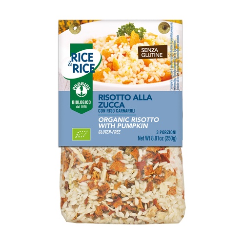 Dýňové rizoto - s misem od Probios je hotové rizoto s rýží carnaroli. Díky své schopnosti držet tvar při vaření a vytvořit s dochucovadlem lahodnou krémovou konzistenci.