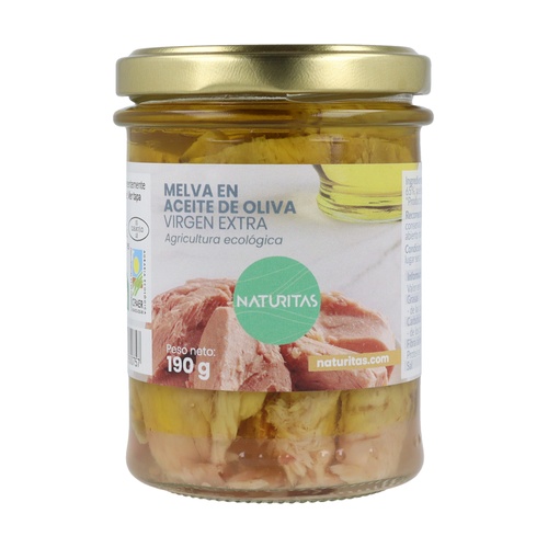 Melva (Auxis Thazard) (ryba) 65 %, extra panenský olivový olej* a sůl.