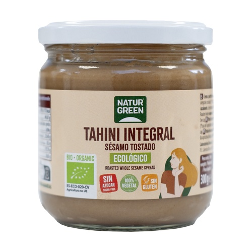 Bio pražený tahini od Naturgreen, pyré vyrobené z ekologicky pěstovaných pražených a oloupaných sezamových semen.