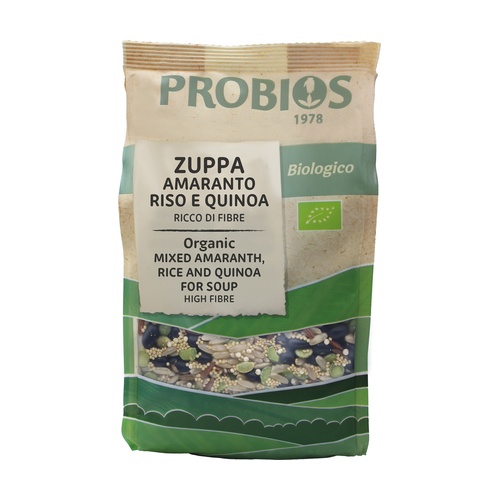 Zupa z amarantu a quinoi od Probios je polévka na bázi bio obilovin a luštěnin, zdroj vlákniny a připravená k použití, kterou lze podle chuti obohatit zeleninou!