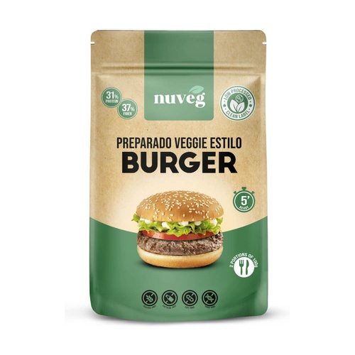 Veggie Burger od nuveg je jednoduchá formulace, ze které po hydrataci a smíchání vznikne náhrada masa s jeho chutí a texturou, ideální pro vychutnání si extrémně zdravého jídla rychlým a snadným způsobem.