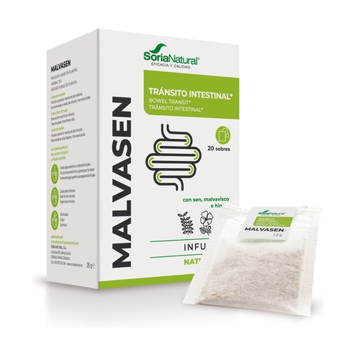 Natusor Infusões 18 Malvasen de Soria Natural je směs rostlin s laxativním, antispazmodickým, karminativním, trávicí stimulující a mírně emolientním účinkem.
