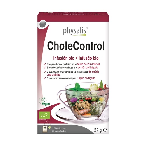 Cholecontrol Bio bylinný čaj Physalis je bylinný čaj obsahující ostropestřec mariánský a kurkumu, které přispívají k dobré funkci jater a metabolismu tuků.