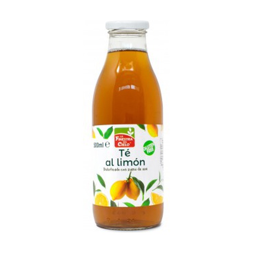 Citronový čaj v lahvi o objemu 500 ml. Slazený hroznovou šťávou a certifikovaný jako bezlepkový. Čerstvý bio doušek k uhašení žízně nebo ke konzumaci mezi jídly.