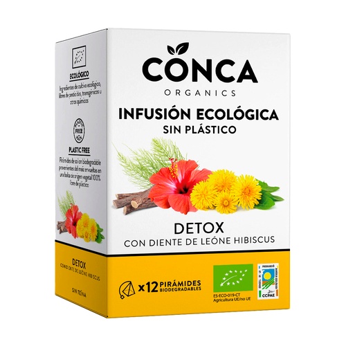 Bio detoxikační nálev Conca Organics je vyroben ze super kombinace listů a květů plných antioxidantů, která vás překvapí. Je to perfektní doplněk pro očistu organismu (hydratuje, pomáhá čistit tělo a přináší odvodnění a odstranění tekutin). Obsahuje pampelišku, růži šípkovou, lékořici, ibišek, přesličku rolní a šalvěj.