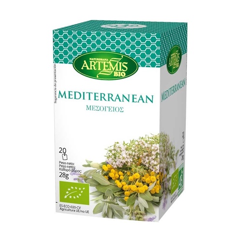 Středomořský bio nálev Artemis je přípravek na bázi tymiánu, šalvěje a santoliny. Vynikající trávicí prostředek užívaný po jídle. Dokonalý doplněk středomořské diety.