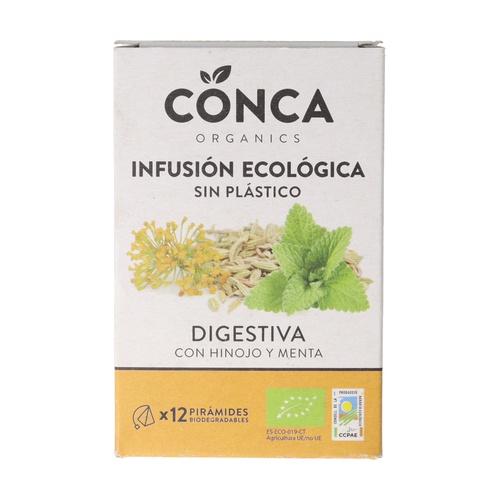 Bio trávicí bylinný čaj Conca Organics je osvěžující nálev s různými druhy rozmarýnu a tymiánu, ideální pro zlepšení trávení. Neobsahuje tein a jeho aroma a chuť jsou intenzivní.