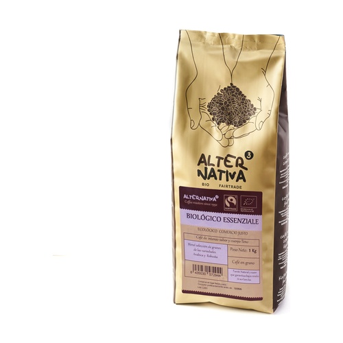 Kávová zrna s přirozeným pražením, směs Arabica a Robusta. Ekologická certifikace a fair trade.