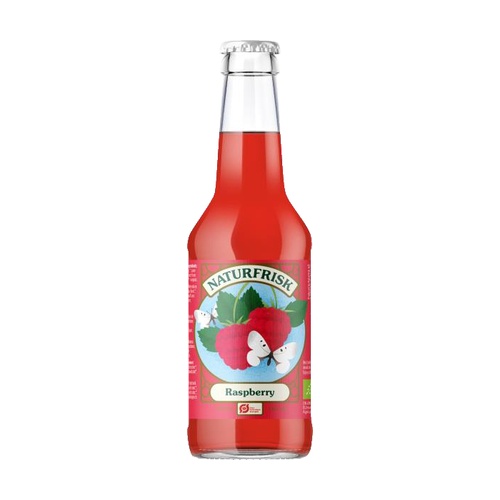 Voda, 13 % šťávy z malin z koncentrátu*, cukr*, oxid uhličitý, přírodní aroma maliny*, šťáva z černého bezu z koncentrátu*, kyselina citronová. *z ekologického zemědělství.