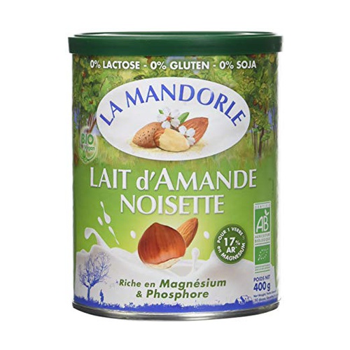 Částečně odtučněné mandle* (původ Sicílie nebo Španělsko) (40 %), částečně odtučněné lískové ořechy* (10 %) (původ Itálie), dehydrátovaný rýžový sirup*, rýže*, akáciová vláknina*, přírodní vanilkové aroma*. *Z ekologického zemědělství.
