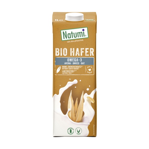 Biologický ovesný nápoj s omega 3 od Natumi je nápoj s jemnou a mírnou sladkostí, bez přidaných cukrů. Díky cennému lněnému oleji je tento ovesný nápoj zdrojem omega-3 pro každý den. Univerzální použití. Ať už čistý nebo v müsli, skutečný všeuměl.