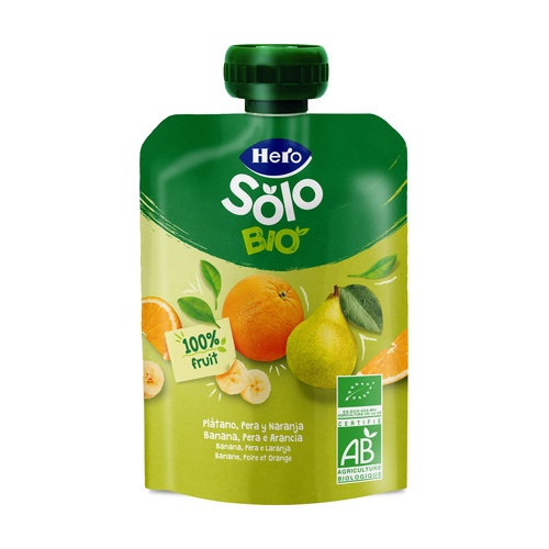 Sáček banán, hruška a pomeranč 4m+ hero solo bio