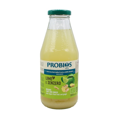Limetková a zázvorová šťáva Probios je jednou z bio ovocných šťáv, oslazená pouze hroznovou nebo jablečnou šťávou, s ingrediencemi z italského zemědělství a bez lepku.