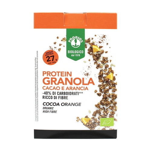 Biochampion Protein Granola Cacao E Arancia od Probios je křupavý a lahodný bio müsli bez lepku složený z bezlepkových cereálních vloček se semínky, kakaovým práškem a voňavým pomerančem. Obsahuje o 30 % méně sacharidů než běžná müsli, zatímco je bohaté na bílkoviny, což je ideální pro doplnění energie po celý den a nepřijít k obědu s klasickým vlčím hladem způsobeným sacharidy.