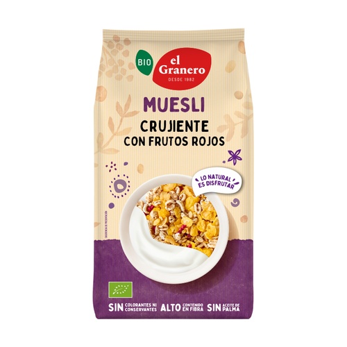 Křupavý müsli s bio červeným ovocem a veganský od El Granero Integral.