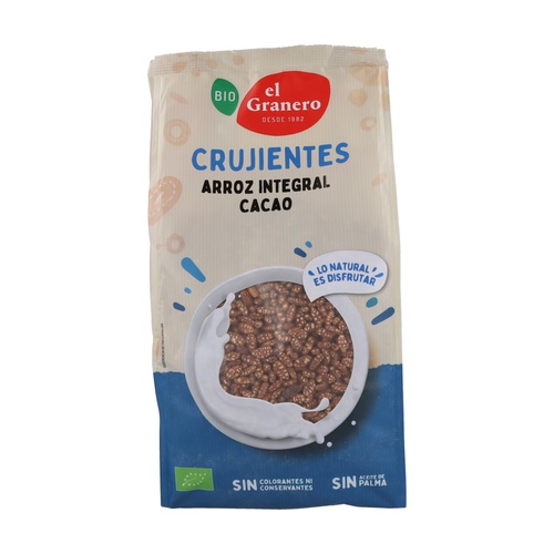 Pražená celozrnná rýže s čokoládou a agáve od El Granero Integral je vyrobena výhradně z ekologicky pěstovaných surovin. Jednou z hlavních výhod celozrnné rýže a důvodem její konzumace je to, že je velmi bohatá na vlákninu, která pomáhá metabolismu pracovat aktivně a tím může spálit více kalorií.