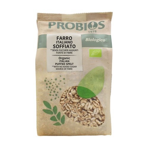 Probios nafoukaná špaldová zrna jsou ideální pro přidání do cereálních vloček, müsli nebo k ozdobení sladkostí. Vyrobeno z italské špaldy, je bohaté na vlákninu a nízké na tuky.