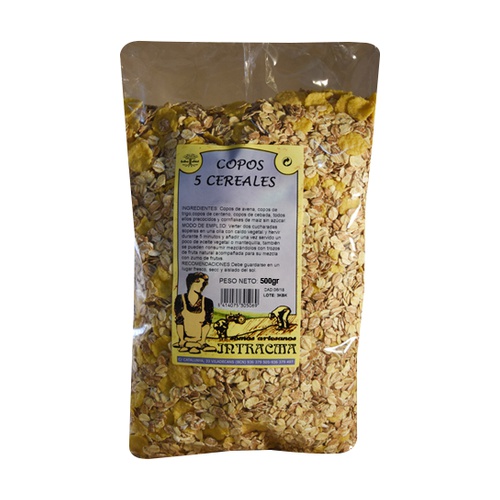 Vločky z 5 cereálií od Intracma jsou zvláštní druh zrna, které může pocházet z jakéhokoli obilí: oves, pšenice, ječmen, žito, rýže atd. Když je zrno rozdrceno, aby se zkrátila doba vaření, nazývá se VLOČKY. Obsahuje velké množství vlákniny a vitamínů. Cereální vločky se získávají z předvařeného a lisovaného obilí.