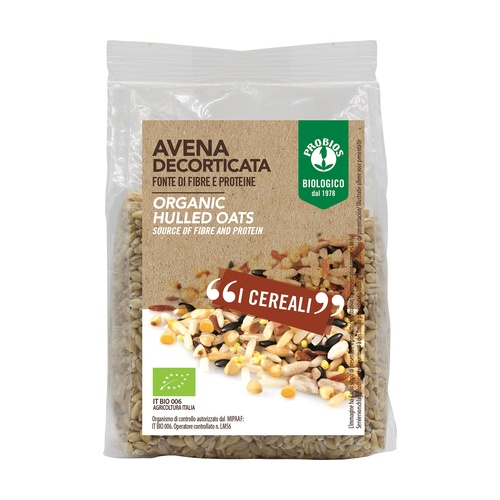 Oves (Avena sativa) Ovesné zrno je také vynikající pro použití v domácích mlýncích k přípravě chutných vloček na snídani. Probios nabízí oves pěstovaný v Itálii. Mezi jeho nutričními vlastnostmi vyniká vysoký obsah přírodní vlákniny.
