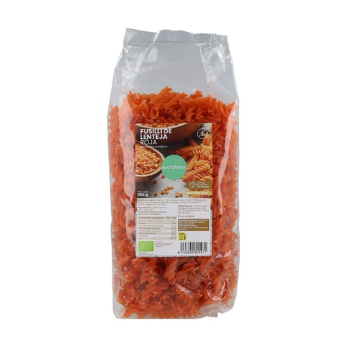 škoda, že nemá celé % eu.El mejor fusilli de lenteja roja que he comprado en cuanto a paladar. Lástima que no tenga todo el % de UE.