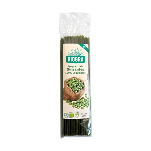 Bio hráškové špagety od Biográ, vyrobené z hráškové mouky. Tyto hráškové špagety mohou být velkou pomocí při začleňování luštěnin do rodinné stravy.
