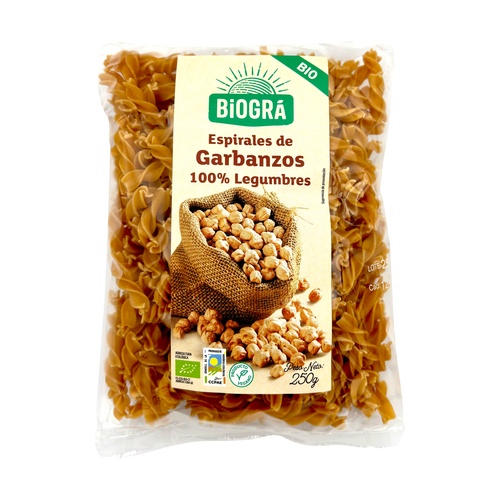 Biográ cizrnové spirály jsou vyrobeny ze 100% cizrnové mouky. Jsou ideálním produktem pro začlenění luštěnin do rodinné stravy.