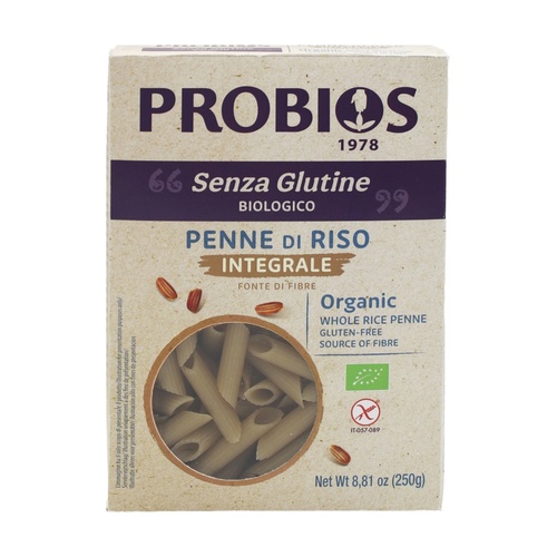 Celozrnné rýžové penne Probios jsou těstoviny z 100% celozrnné rýže. Chutné, lehké, uspokojí nejen chuťové buňky lidí s výživovými omezeními, ale i celé rodiny.