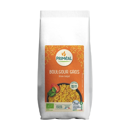 Tradiční bulgur Primeal se vyrábí napařením tvrdé pšenice, sušením a drcením zrn. Ideální k teplé konzumaci samotný, jako příloha k zeleninovému nebo masovému pokrmu. Bohatý na vlákninu.