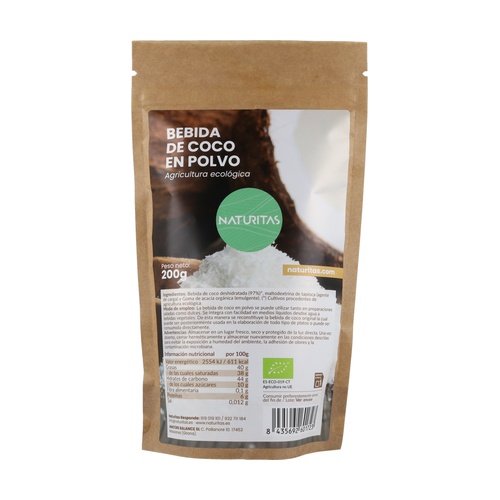 Dehydratovaný kokosový nápoj (97 %)*, tapioková maltodextrin (plnidlo) a organická akáciová guma (emulgátor).