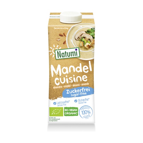 Bio mandlová kuchyňská smetana bez cukru od Natumi je prémiovou zdravou a bezcukrovou alternativou ke konvenční smetaně nebo čerstvé smetaně. Je ideální pro dochucení dipů, omáček, polévek, dušených jídel, dezertů nebo pečení.