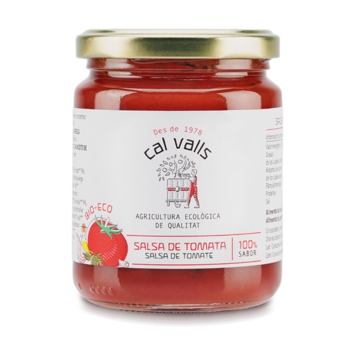Bio rajčatová omáčka Cal Valls vyrobená z zeleniny. Neobsahuje lepek. Ideální pro těstoviny, maso a další potraviny.