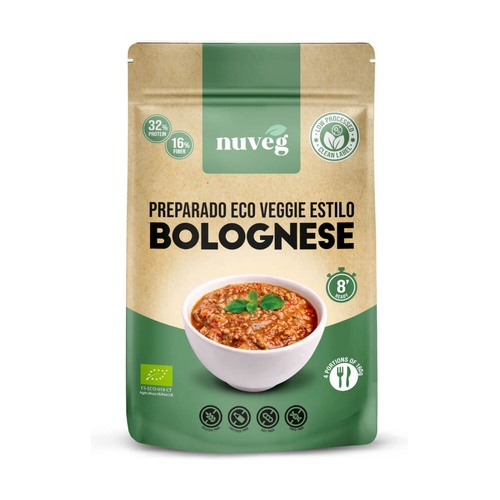 Veganská boloňská omáčka Eco od nuveg je jednoduchá formulace dehydratuované zeleniny (texturované a v prášku), která po hydrataci a smíchání vytvoří náhradu masa s vhodnou chutí a texturou pro extrémně zdravé jídlo, rychlé a snadné na přípravu.