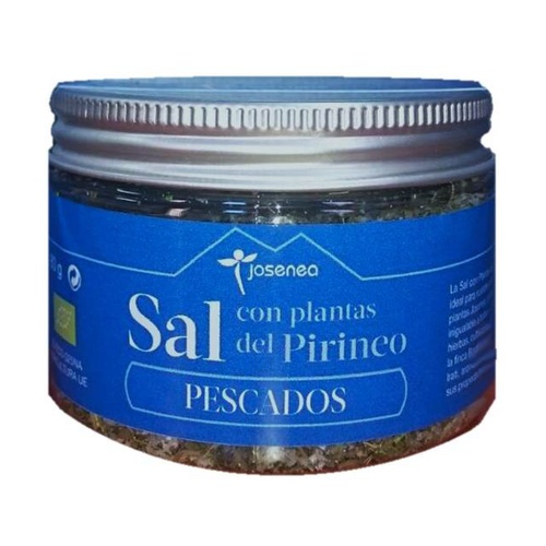 Hrubá sůl s bylinkami z Pyrenejí (ryby) je směs nejlepších bylinek a zeleniny čerstvě nasbíraných na naší farmě Bordablanca v Lumbieru a pravých pramenitých solí z Tierra de Estella, Navarra.