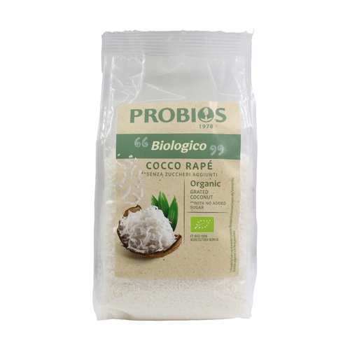 Strouhaný kokos Probios je sušený ořech vhodný do mnoha receptů nebo jako zcela přírodní svačina. Strouhaný kokos je bohatý na vlákninu, garantovaně bez lepku a vhodný pro syrovou stravu.