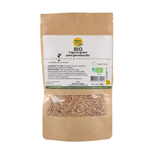 Bio pšeničné zrno na klíčení od Nature et Partage je ideální na saláty, polévky nebo wok. Pro šťávu z pšeničné trávy musí výhonky dosáhnout 15 cm, aby bylo možné šťávu vytěžit. Šťáva se konzumuje ihned po extrakci.