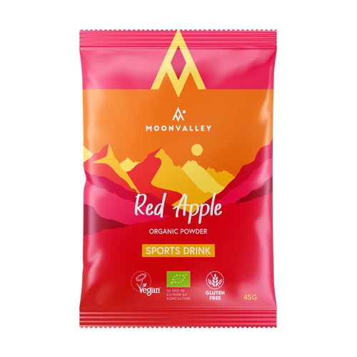 Bio práškový sportovní nápoj Moonvalley s příchutí červeného jablka. Doplňuje elektrolyty. Zůstaňte hydratovaní, motivovaní a užijte si jeho lahodnou chuť. Připravte se na nekonečná dobrodružství a nepřekonatelné tréninkové seance.